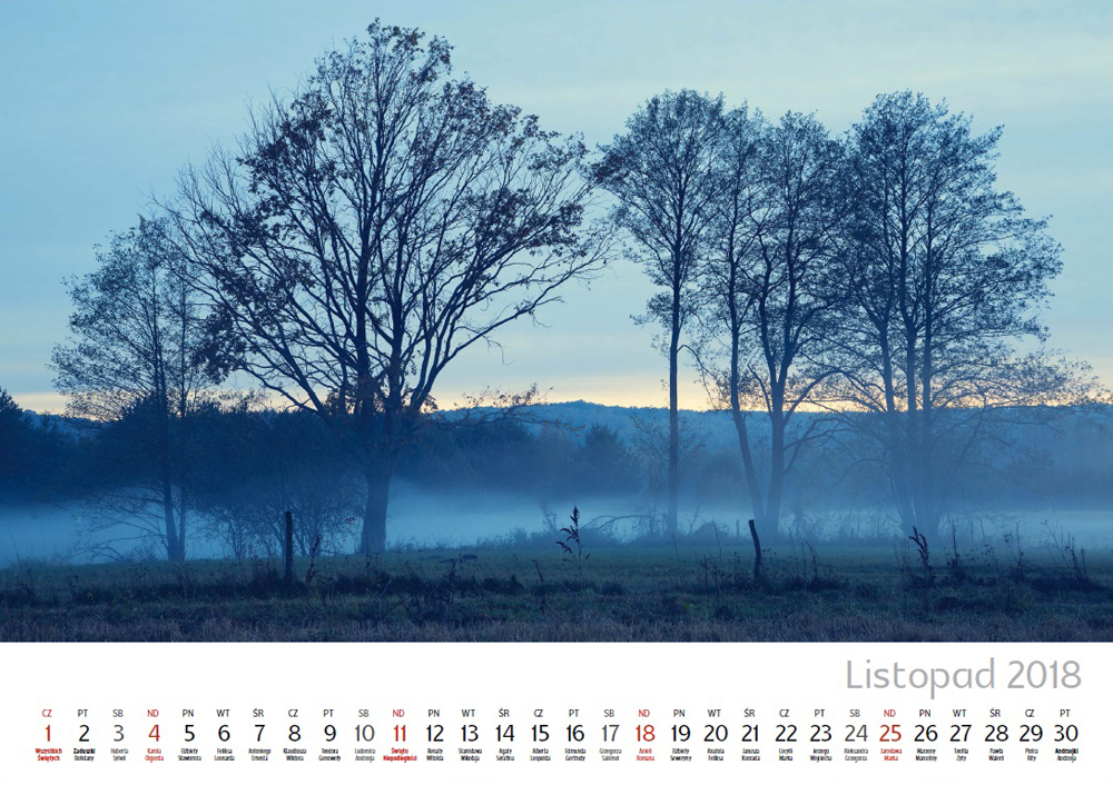 Od dłuższego czasu myślałem o tym, aby wydać swój pierwszy autorski kalendarz. Dziś kiedy udało mi się zrealizować ten cel i spełniło się moje marzenie, jestem szczęśliwy. Zbiór w postaci 13. kart A3 w kalendarzu „Krajobrazy 2018 – Wola Istnienia” jest doskonałym zwieńczeniem tego moim zdaniem bardzo udanego dla mnie fotograficznego roku. W sposób szczególny cieszy mnie fakt, że wyboru zdjęć do wspomnianego kalendarza tak naprawdę dokonali Państwo za pośrednictwem mojego fanpage’a. Jak zapewne wiele osób pamięta – do każdego z miesięcy przedstawiłem 5 propozycji zdjęć i w większości przypadków fotografia, która zdobyła najwięcej polubień znalazła się w kalendarzu. Dlatego korzystając z tej okazji, raz jeszcze serdecznie dziękuję za pomoc przy wyborze, bo czasami był on trudny.