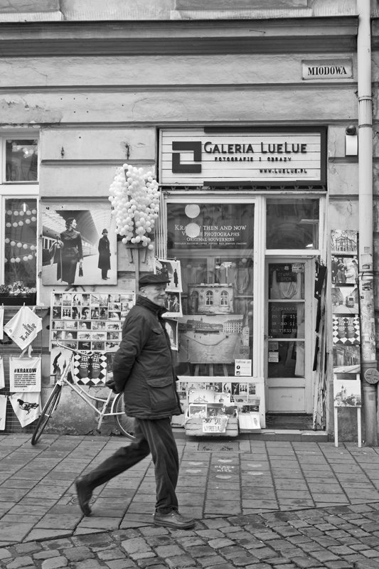 Przed piętnastą wyruszyłem z Mariną na fotografowanie Kazimierza wieczorową porą. Był ostatni dzień grudnia a do zabawy sylwestrowej na Rynku było jeszcze wiele czasu. Rozpocząłem realizację trzeciego celu 🙂 Padało coraz mocniej, ale nic nie odstraszyło mnie przed robieniem zdjęć. Miałem bowiem świadomość, że pewnie wrócę do Krakowa nie wcześniej niż w marcu, więc chciałem dobrze wykorzystać te ostatnie godziny na fotografię uroczych ulic miasta.