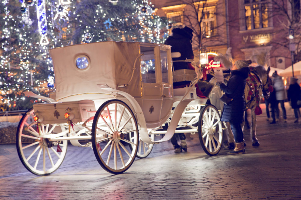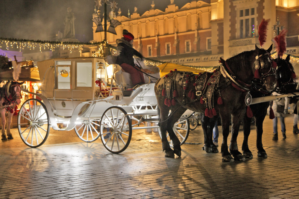 Po spacerze udaliśmy się do hostelu, aby zostawić rzeczy a następnie na kolację. Hostel w sumie był dosyć mroczny, towarzystwo w nim również 😉 Ale przeżyliśmy tę jedną noc 😉 Kiedy poszliśmy coś zjeść – (sporo musieliśmy naszukać się wolnych miejsc – miasto „żyło”, a była to sobotnia noc) nie brałem z sobą statywu. Zostawiłem go w samochodzie, bowiem planowałem wybrać się na nocne zdjęcia po kolacji. Ale gdy już wracaliśmy to Sukiennice krakowskie urzekły mnie niesamowicie. A wszystko za sprawą świątecznego jarmarku. Na świątecznych kramach pojawiły się rękodzieła, ozdoby i jedzenie. Całość stworzyła niezwykły klimat. I do tego te białe dorożki. Choinka… Poprosiłem dziewczyny, aby poczekałby kilka minut, bo już wtedy chciałem zrobić zdjęcia. Jak się okazało, były to jedyne moje zdjęcia z tego wieczoru, więc tym bardziej jestem szczęśliwy, że udało mi się je wykonać, a jeszcze bardziej jestem zadowolony, że Basia miała przy sobie statyw, którego na ten czas mi użyczyła 🙂 Tak powstały zdjęcia, które najbardziej lubię z mojej kończącej roku podróży do Krakowa.
