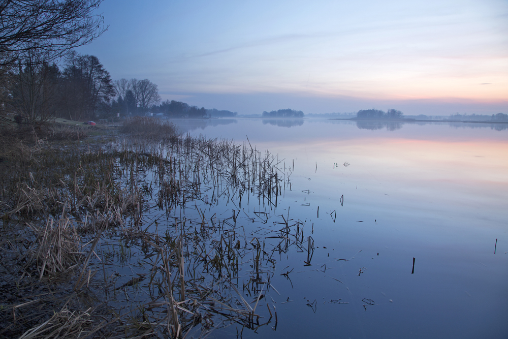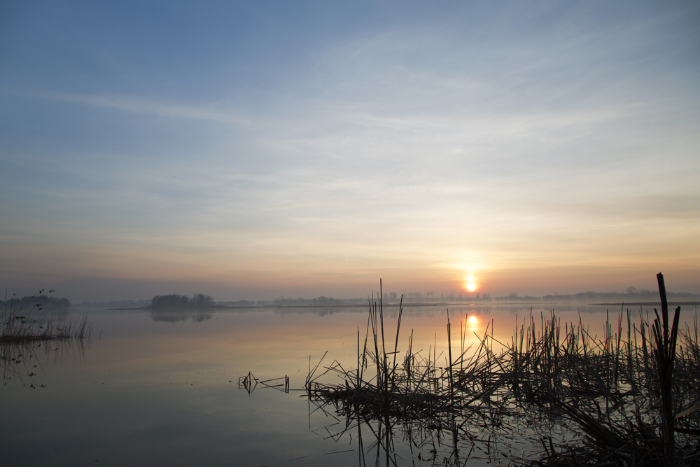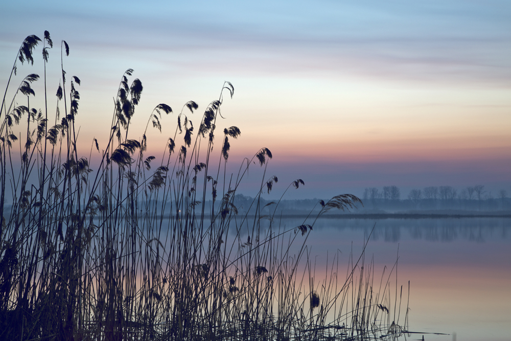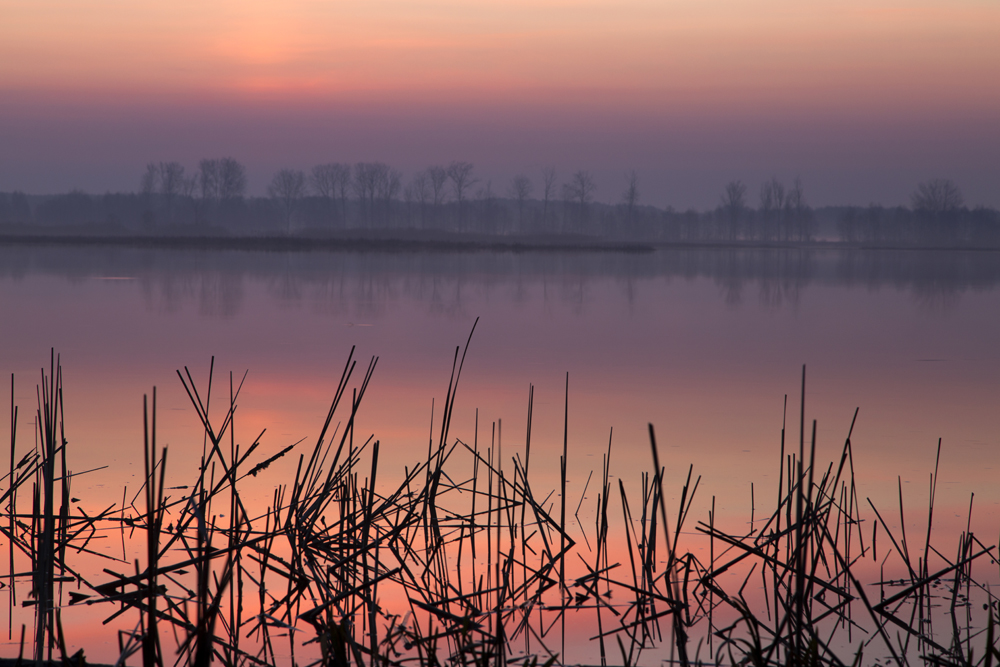 Czas zatem na pierwsze kadry. W tym przypadku skupiłem się głównie na trzcinach, łódce oraz ogólnego ukazania krajobrazu jaki stałem podczas tzw. „niebieskiej godziny” /wypada ona mniej więcej 30-40 minut przed wschodem słońca/.