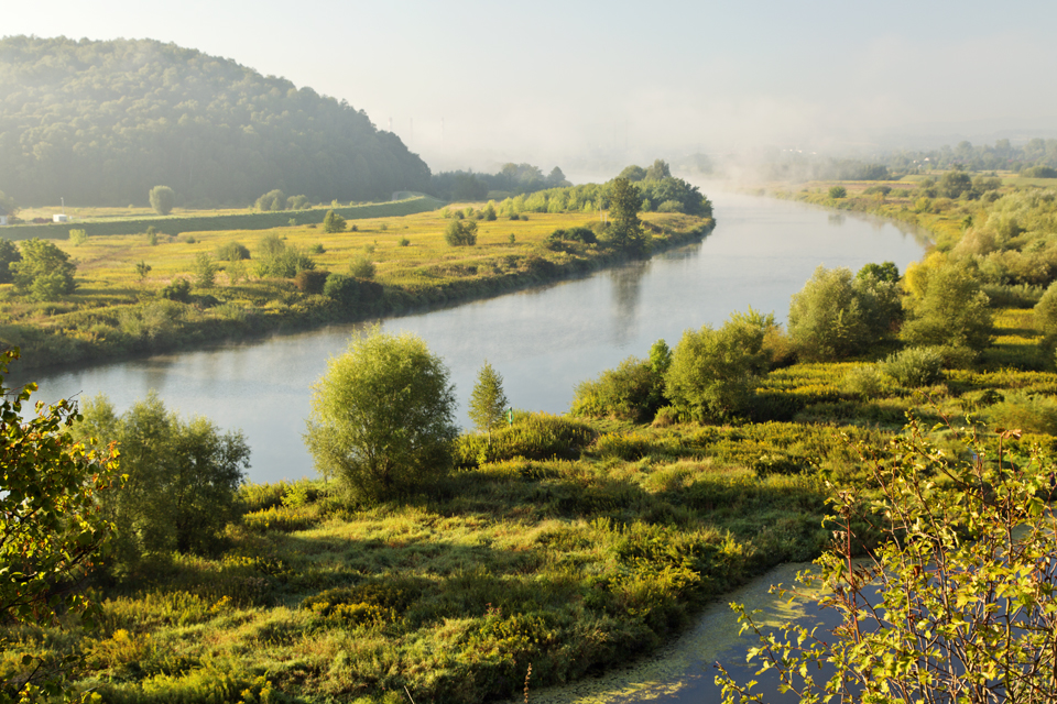 A to właśnie patrząc na poniższe zdjęcie warto wiedzieć, że tak jak się kończy łąka, to w tym miejscu płynie Wisła i naprzeciwko znajduje się klasztor. Z tej perspektywy zupełnie go nie widać. Gdybym jechał w to miejsce nie wiedząc, że po drugiej stronie jest brzeg, wzgórze – nie miałbym w ogóle pojęcia co fantastycznego skrywa się za tą ścianą mgły… Przyznam, że to było dla mnie niesamowite!
