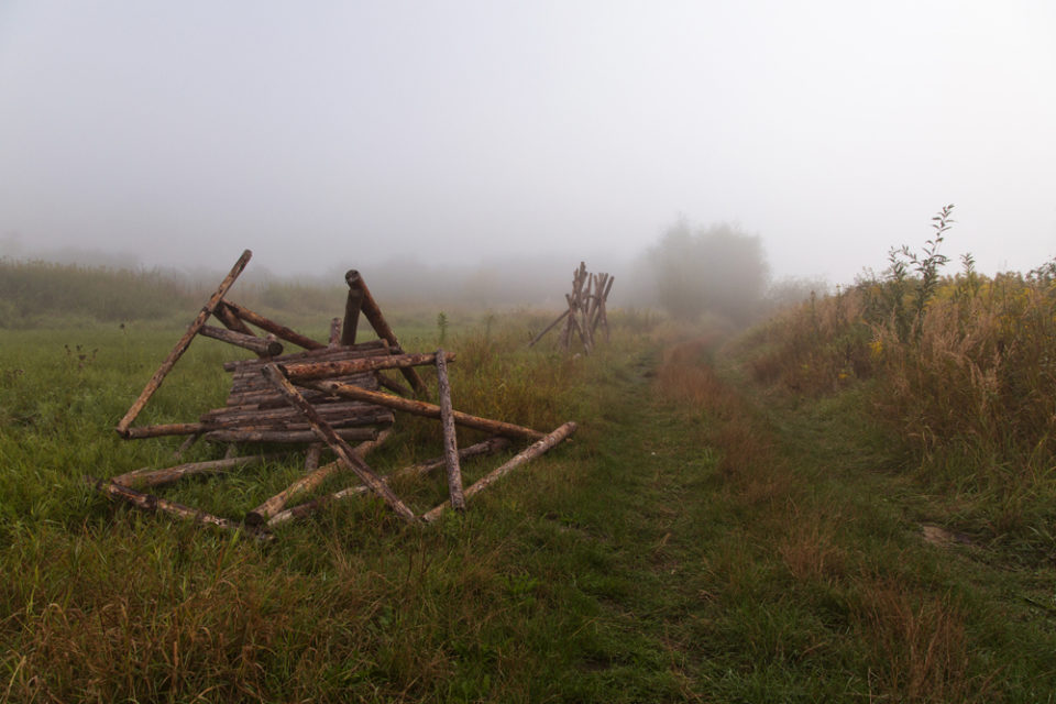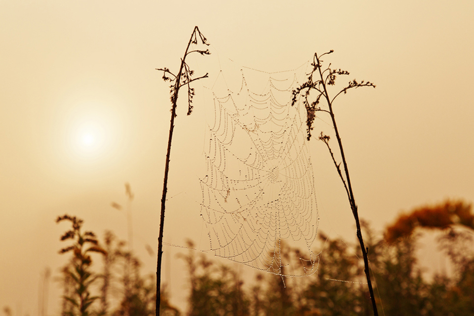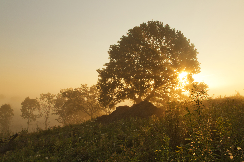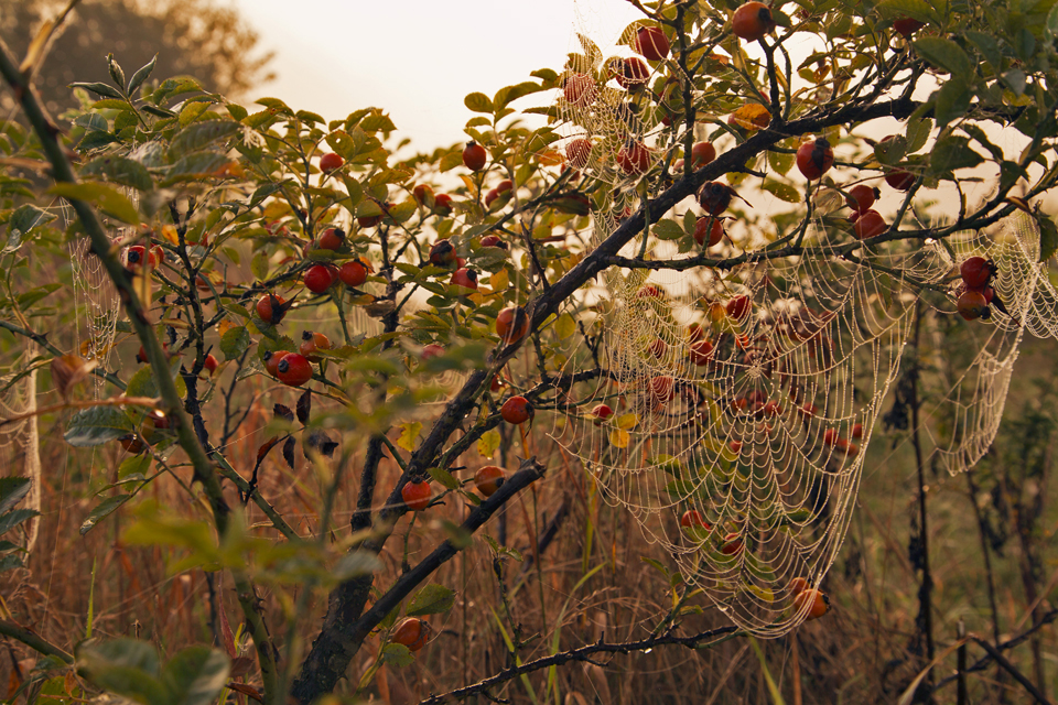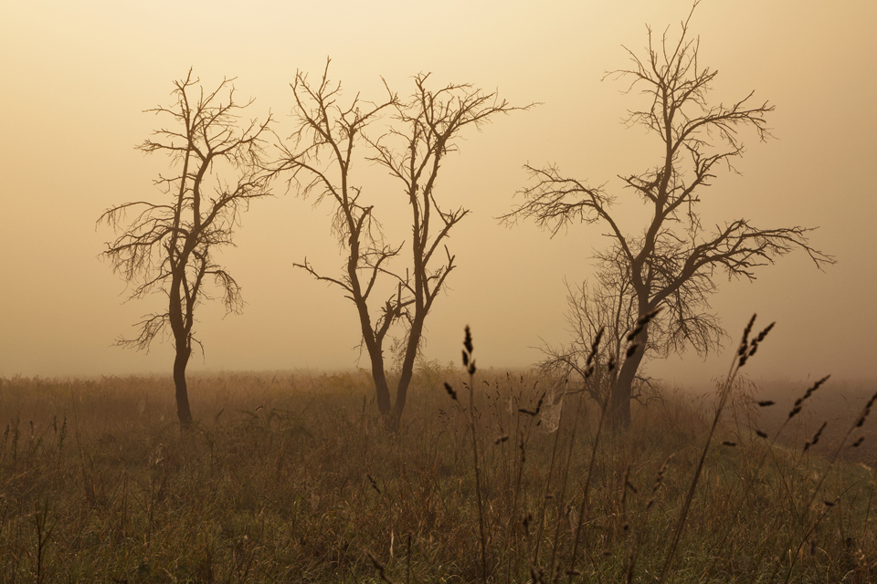 Gdzieniegdzie przez mgłę można było dostrzec drzewa. Na łące znajdowało się też mnóstwo pajęczyn. Wszystko to stworzyło niezwykły nastrój! Tak jak gdyby mgła wyznaczała koniec. Jakby nic już za nią nie istniało.