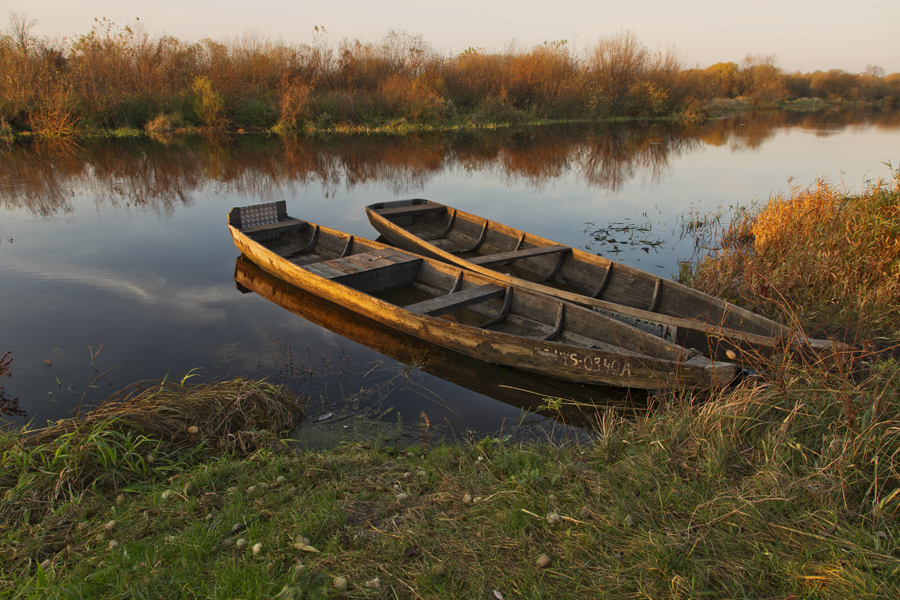 Oczywiście od razu wówczas pomyślałem: „Pakuj aparat, statyw i śmigaj na zdjęcia” 😉 A gdzie? Nad Bug. Do miejsca, w którym znajdują się pychówki i łódki. Wybór był więc łatwy. Drogoszewo. Z wielu powodów czuję się w tym miejscu fantastycznie. Po pierwsze: widok na rzekę zawsze mnie tutaj zachwyca. Po drugie: doświadczam w tym miejscu pozytywnych odczuć. Cisza…Natura. Po trzecie: motyw przewodni – cóż… muszę powiedzieć, że uwielbiam szczególnie drewniane pychówki i póki co z miejsc, które widziałem, to te w Drogoszewie prezentują się najpiękniej. Co ciekawe, są cztery pychówki, po dwie obok siebie. Mocno romantycznie 😉 Do zdjęć idealnie 🙂