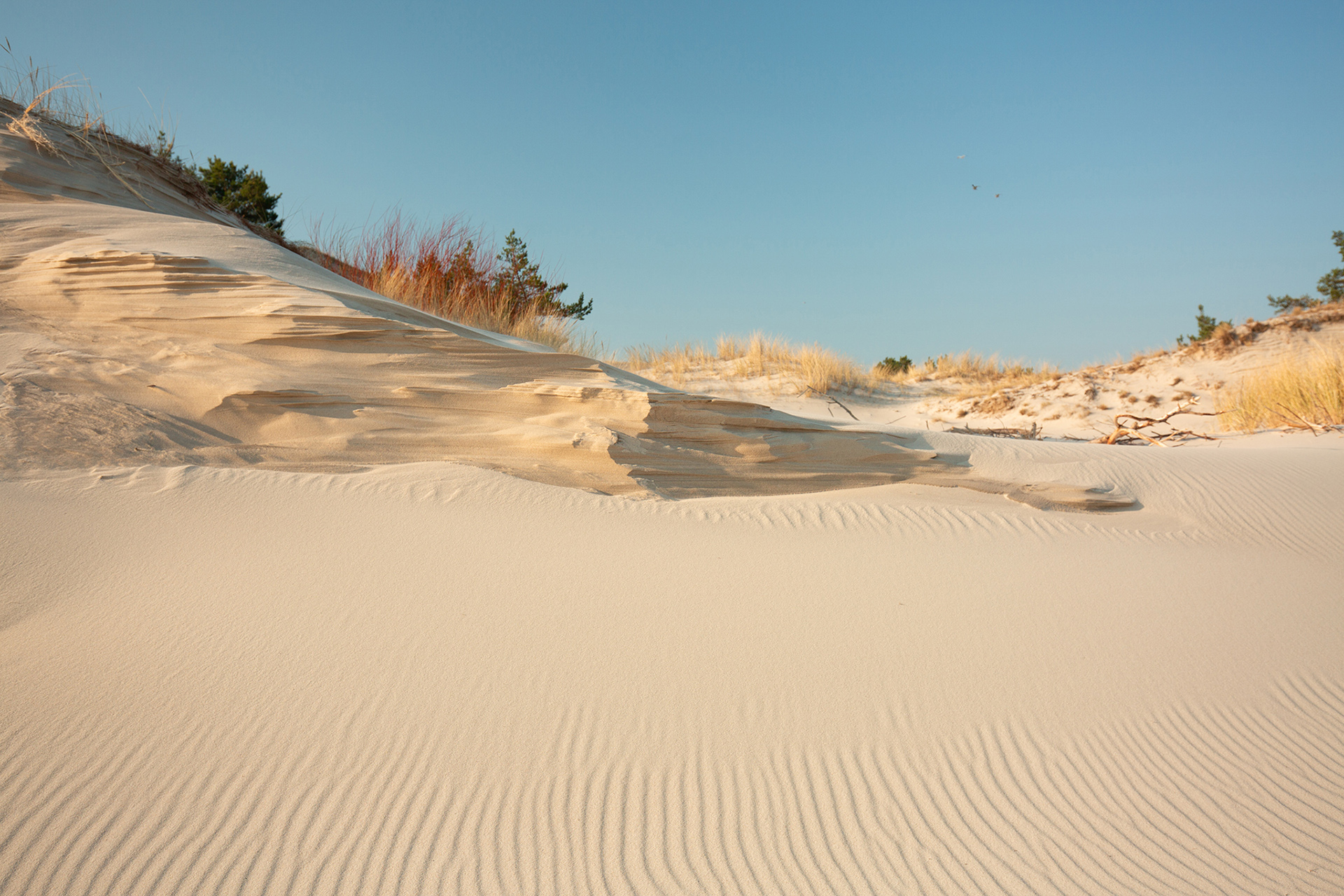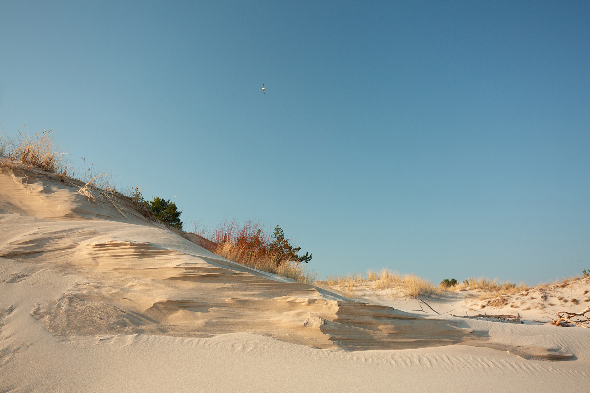 Nie mogłem doczekać się, kiedy spojrzę na morze. Trawy szarpane przez silny wiatr, przesuwający się piach tworzył niezwykłe wzory, a światło poranka nadawało wydmom różnorodne barwy. W tym wszystkim tylko ja. Żadnych osób wokoło. I ta innego rodzaju cisza, za którą zawsze tęsknię.